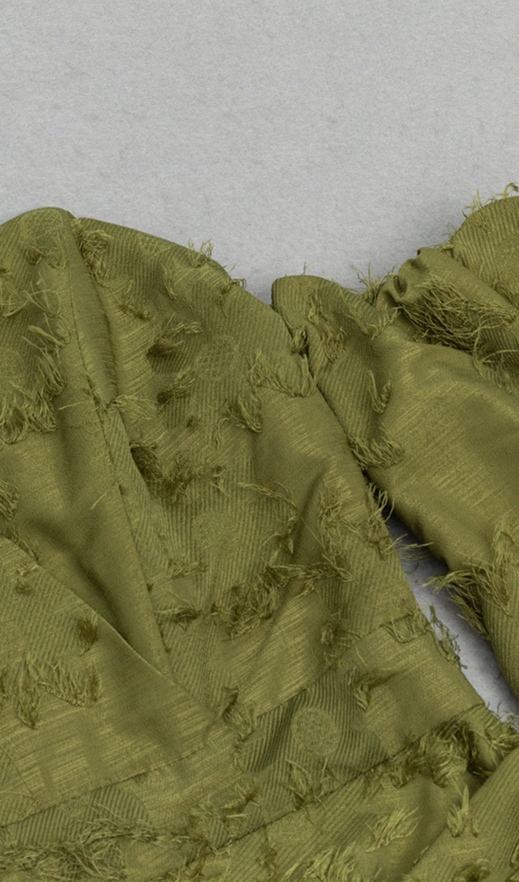 Textured - Jacquard Off - Shoulder Midi Dress in Olive Green