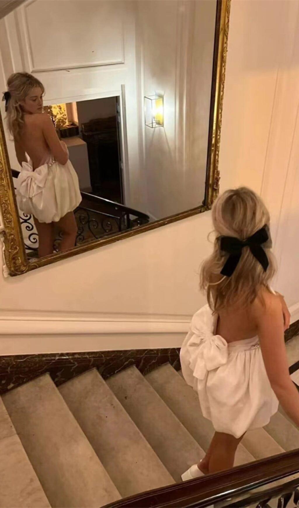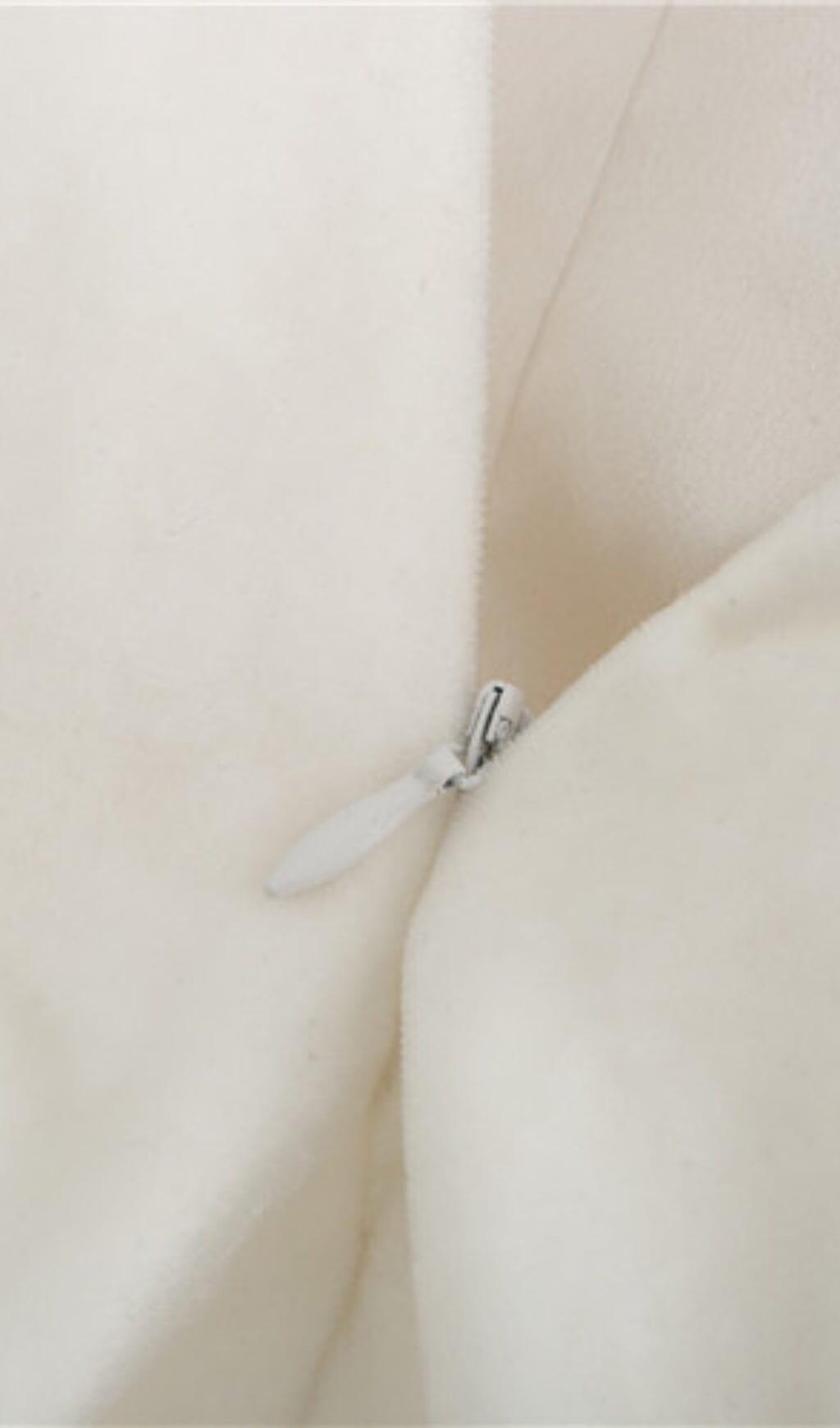 Experience luxury and elegance with our VELVET HALTERNECK MINI DRESS IN WHITE. This stunning strapless dress is designed to make you look and feel absolutely radiant. The cut-out shaped detailing adds a touch of sophistication while keeping you secure and comfortable throughout the day or night.