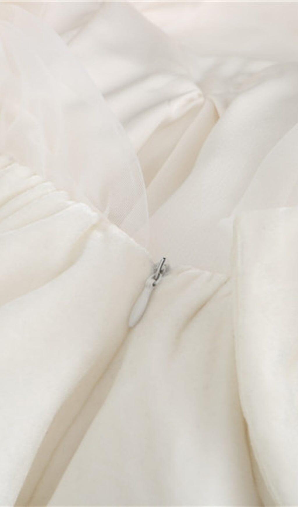 VELVET HALTERNECK MINI DRESS IN WHITE
