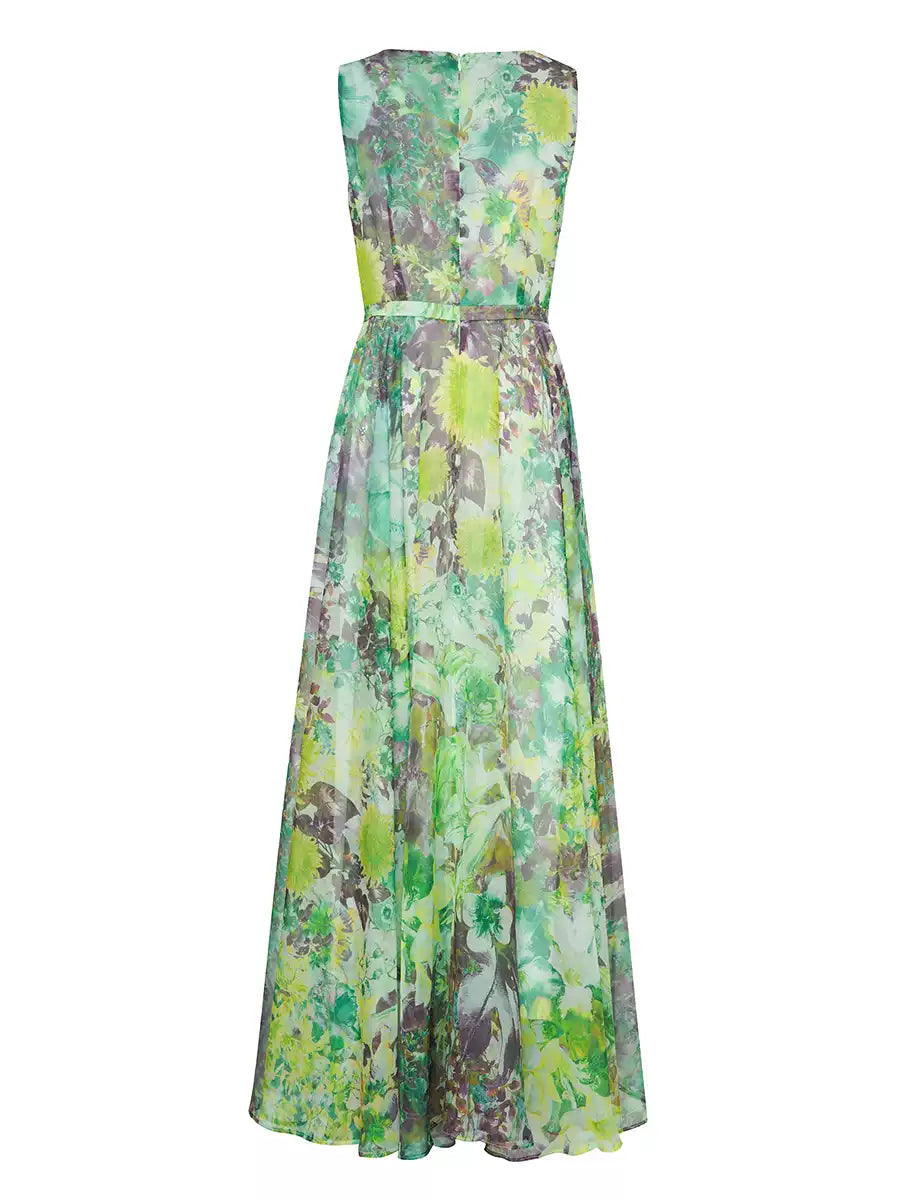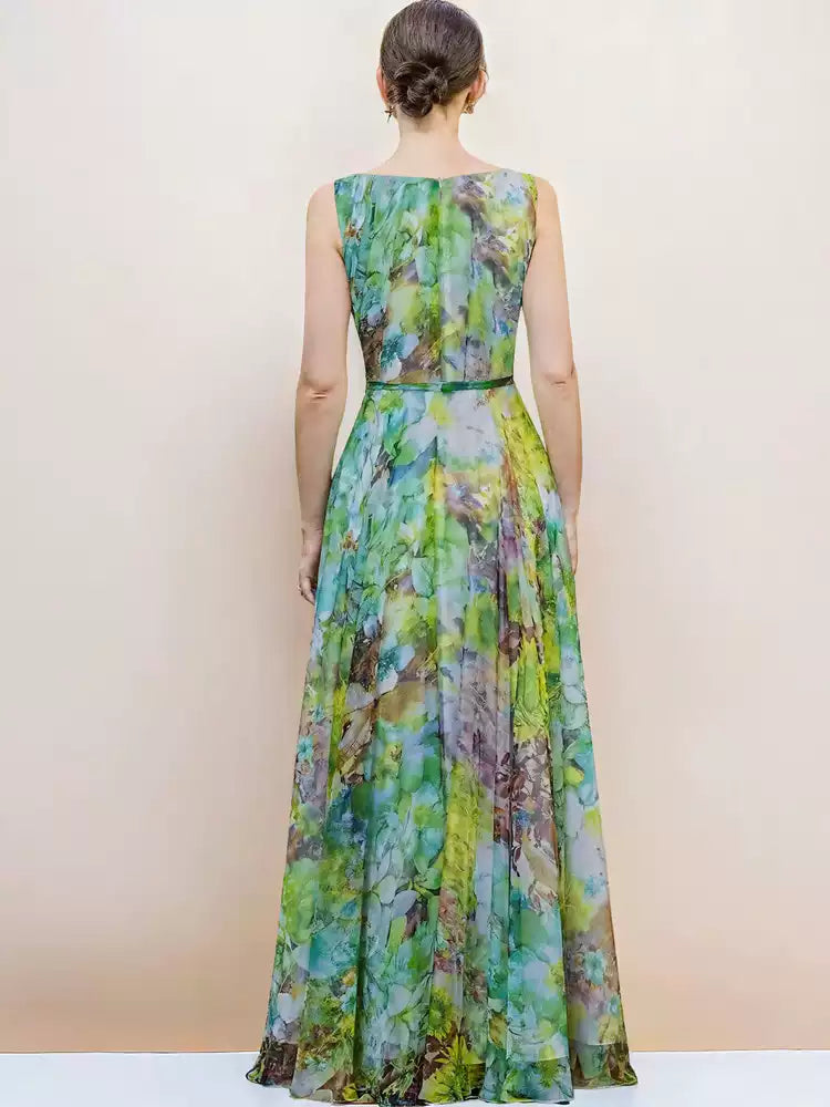 Watercolor Floral Chiffon Sleeveless Hoco Maxi Dress