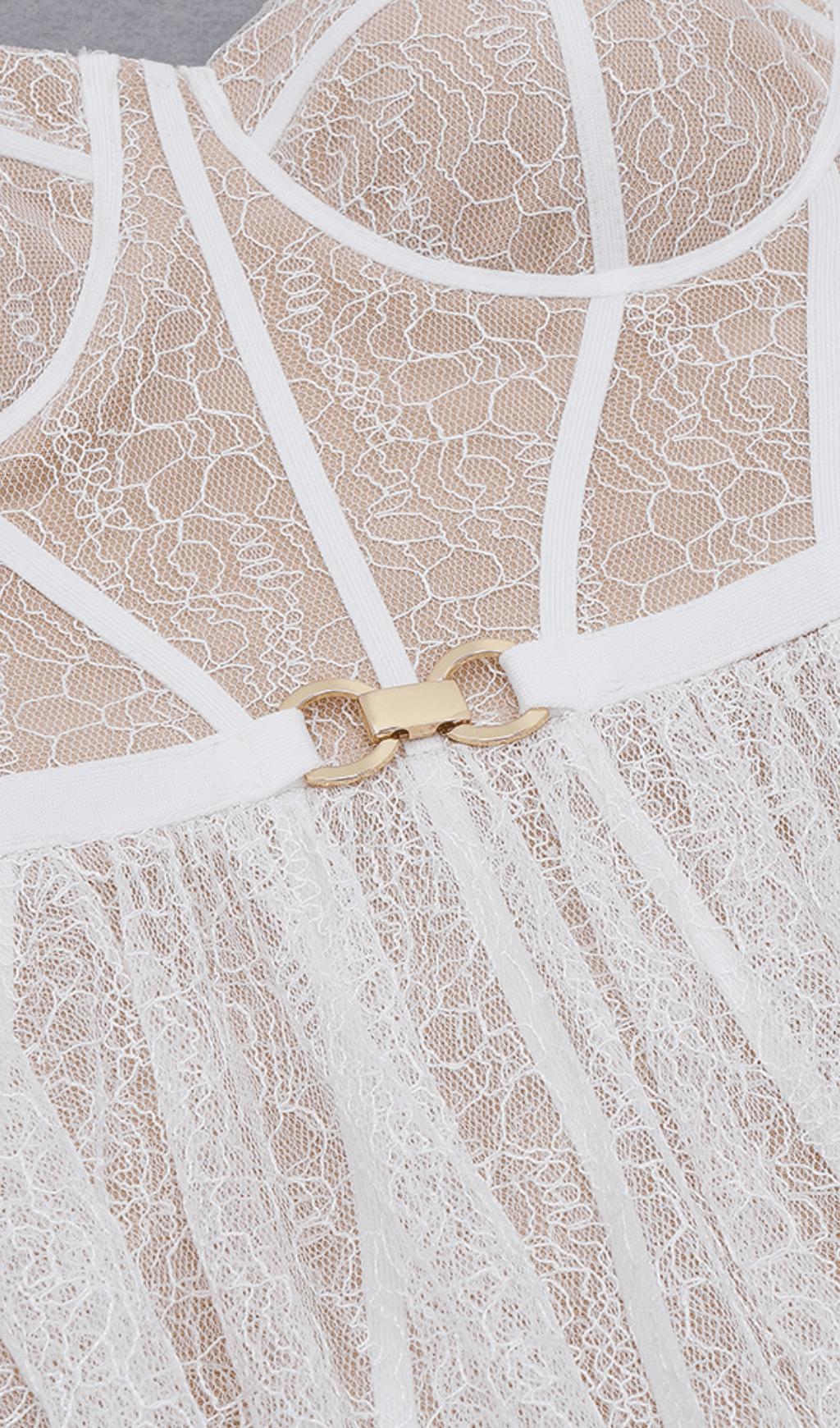 Introducing our stunning White Lace Stitching Maxi Dress, a perfect combination of elegance and style. This dress is designed with intricate lace stitching, making it a standout piece for any occasion.