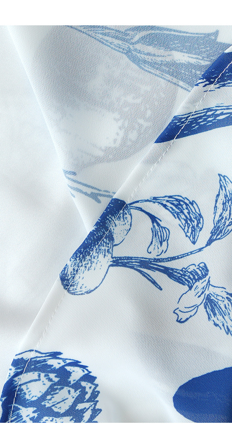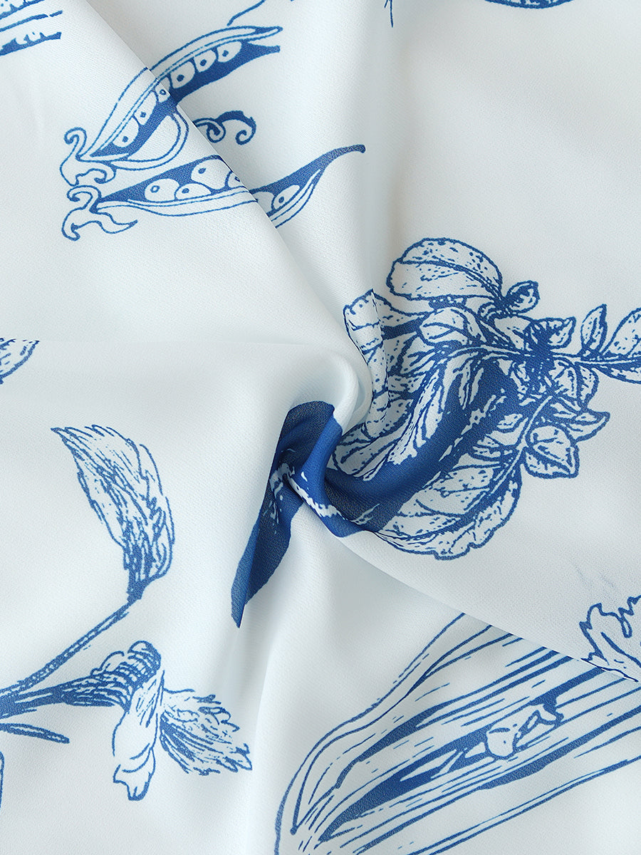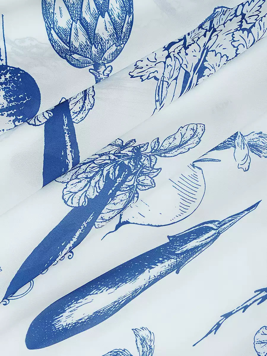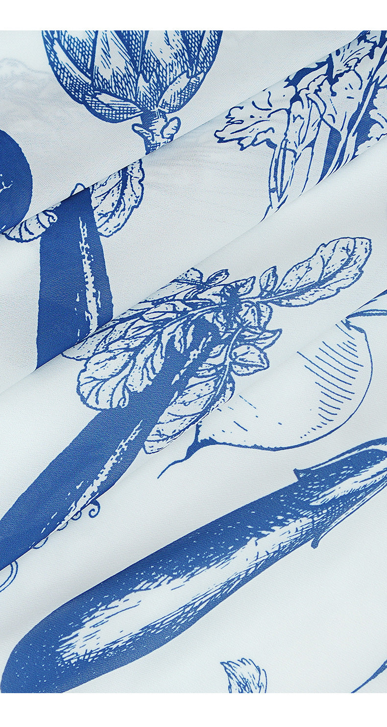 This dress showcases a clean white base adorned with charming blue vegetable - themed prints. The cap sleeves and fitted waist create a flattering silhouette, while the flowing maxi skirt adds a touch of elegance. Perfect for summer garden parties, casual brunches, or even as a unique choice for a country - style event. It combines a playful print with a sophisticated design, making it a standout piece for relaxed yet stylish occasions.
