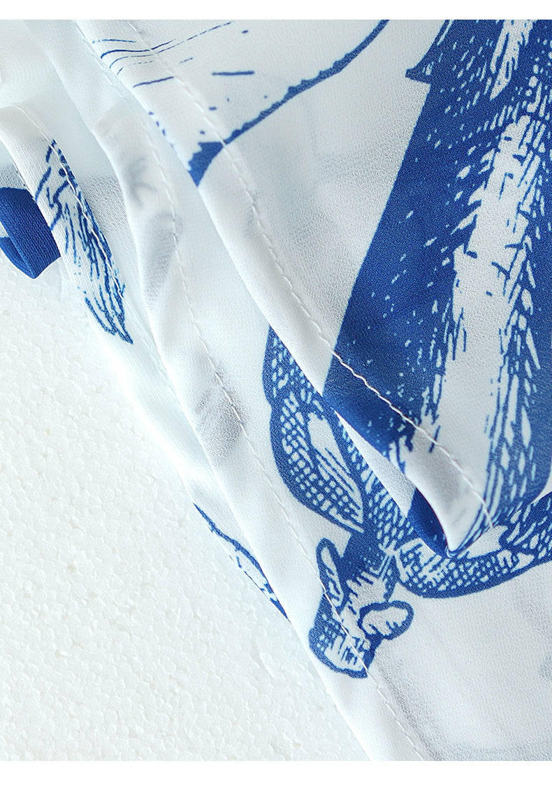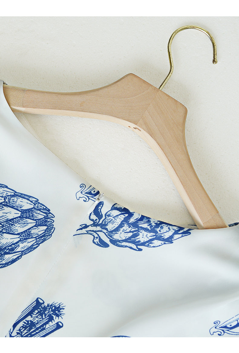 White Maxi Dress with Blue Vegetable Prints and Cap Sleeves