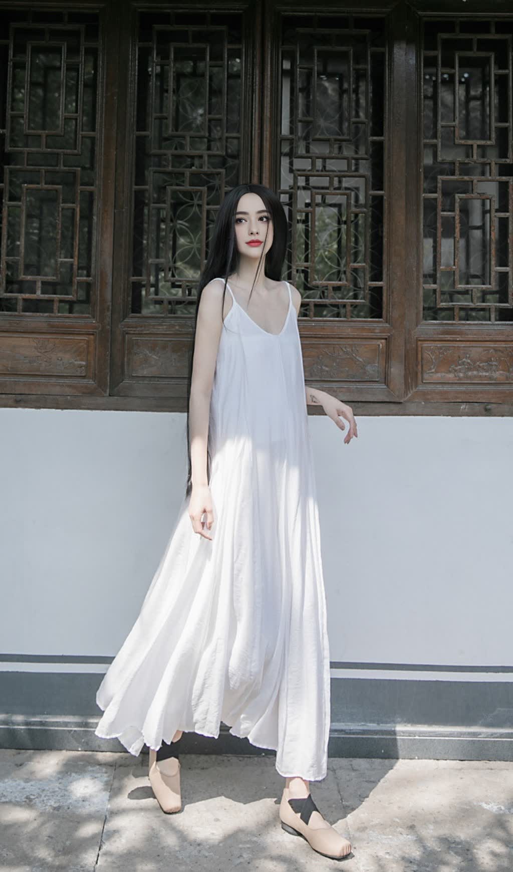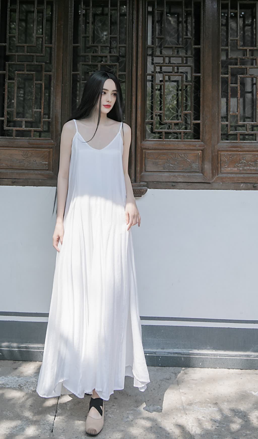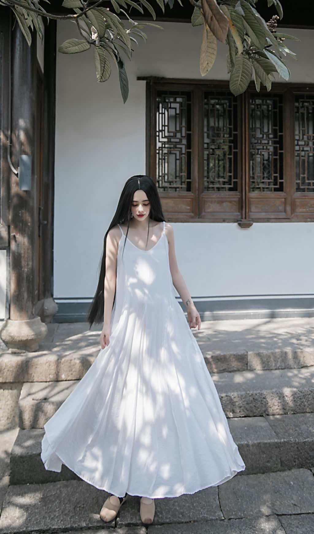 Scene: The background incorporates elements of Chinese - style architecture. The wooden carved windows are simple and elegant. The wall is in a light color, and the ground is a flagstone path. The light and shadow fall, and the whole creates a quiet environment full of oriental charm. The clothing integrates with the scene, highlighting a unique aesthetic.