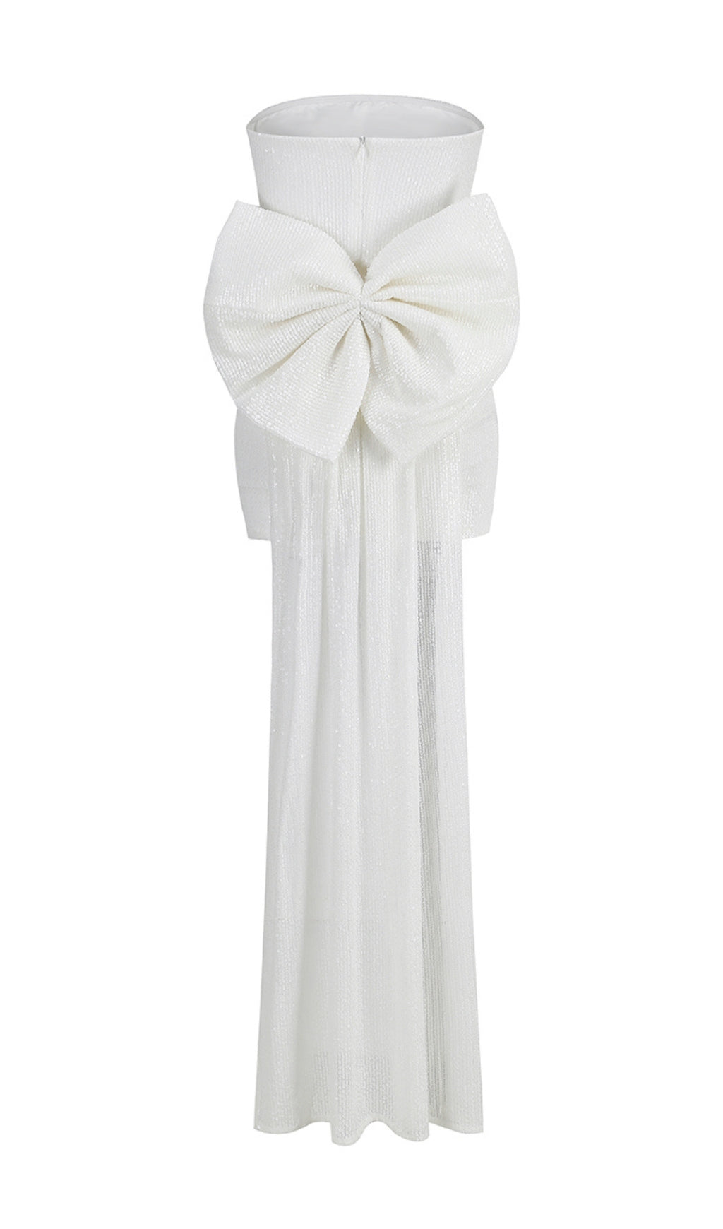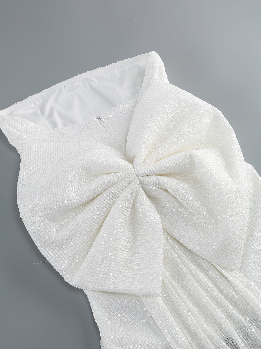 AKILAH WHITE STRAPLESS BOW MINI DRESS