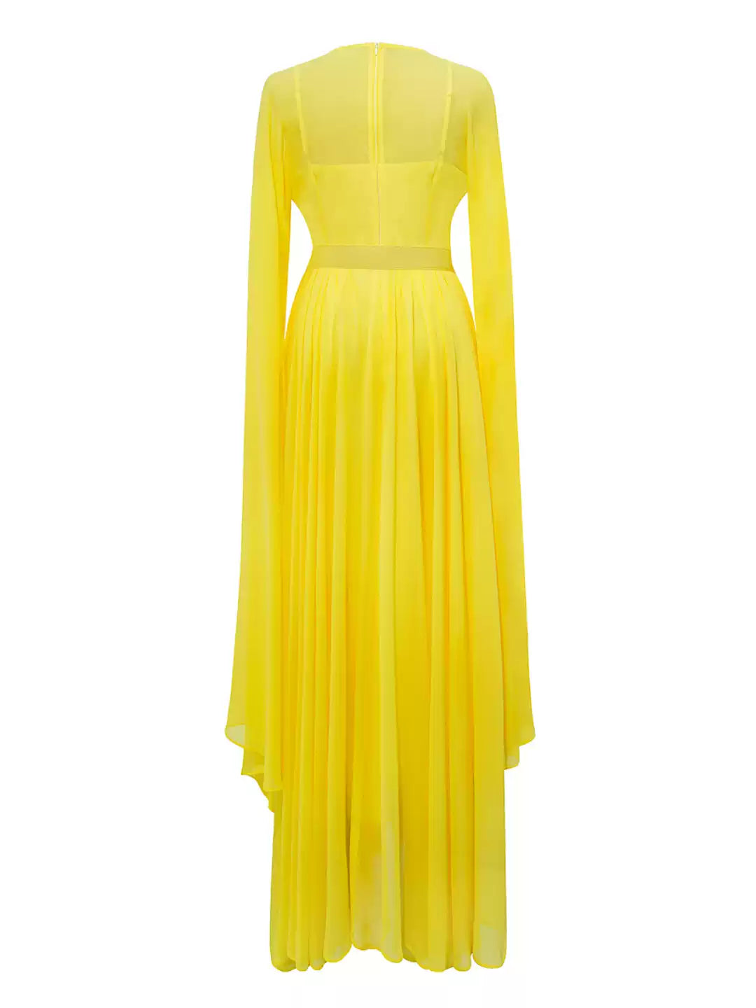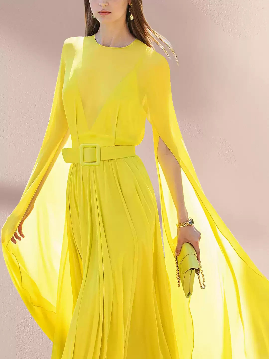 Yellow Sheer - Sleeved Belted Maxi Dress